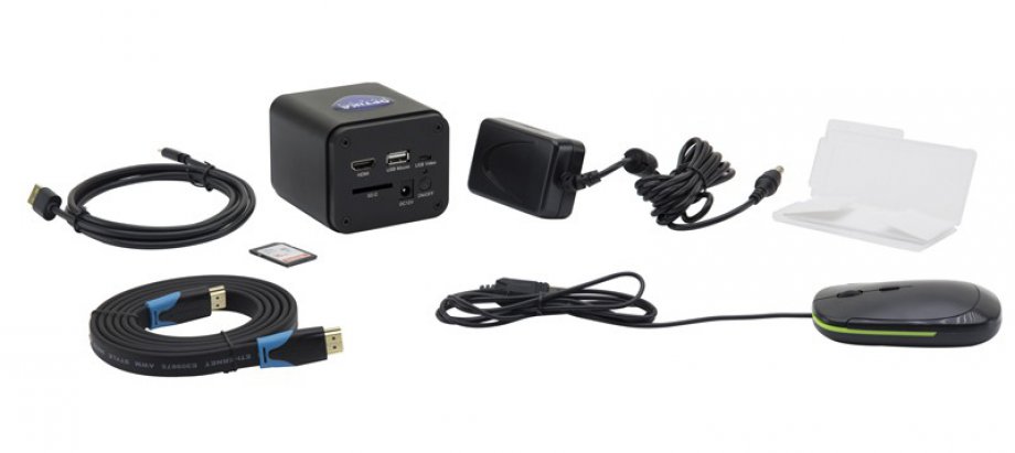 HDMI (1080p) and USB camera, for TV live view and PC use.