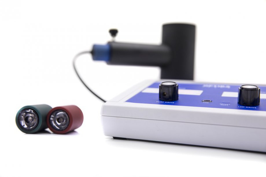 The photoelectric effect or photoemission is the production of electrons or other free carriers when light is shone onto a material. Varying the voltage across the phototube, you will be able to check the relation between the energy of the emitted electrons and the wavelength of the incident radiation. Thanks to Einstein notion regarding photoelectric effect, you will also be able to estimate the value of the Planck constant. This instrument is a good starting point to study quantum mechanics. It is basically composed of two parts: a phototube and a control unit (in which is built-in a voltmeter and a nanoammeter). Three LEDs, with average wavelength known, are supplied. The light intensity could be varied from 0 to 100%.